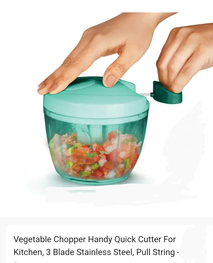 Vegetable Chopper Handy Quick Cutter For Kitchen, 3 Blade Stainless Steel, Pull String – 350Ml – Vegetable Cutter
